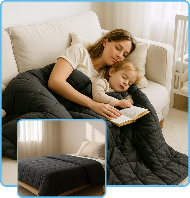גילינו שהתשובה נמצאת בלחץ העמוק שמגיעה משמיכה כבדה – שיטה מוכחת מדעית שעוזרת להירגע, להוריד עומס רגשי ולתמוך בשינה טבעית ובריאה יותר.